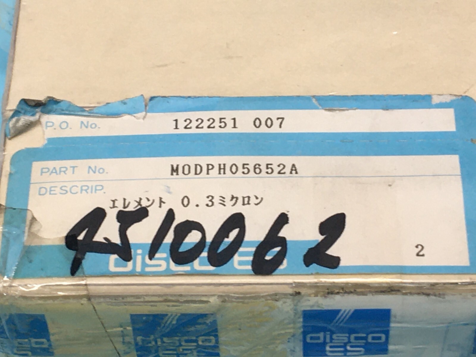 2 DISCO MODPH05652A ELEMENT .3 MICRON AIR FILTER, KWS250X77-1
