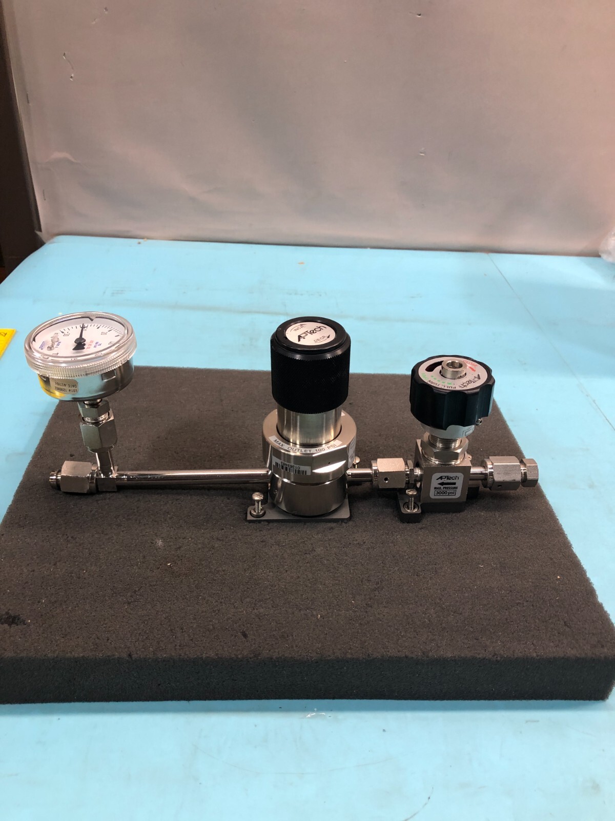 APTECH AP5008S 4 MT SC MK PRESSURE REGULATOR + AP3657S 2PW FV4 MV4 SHUTOFF VALVE + WIKA PRESSURE GAUGE GASLINE ASSEMBLY
