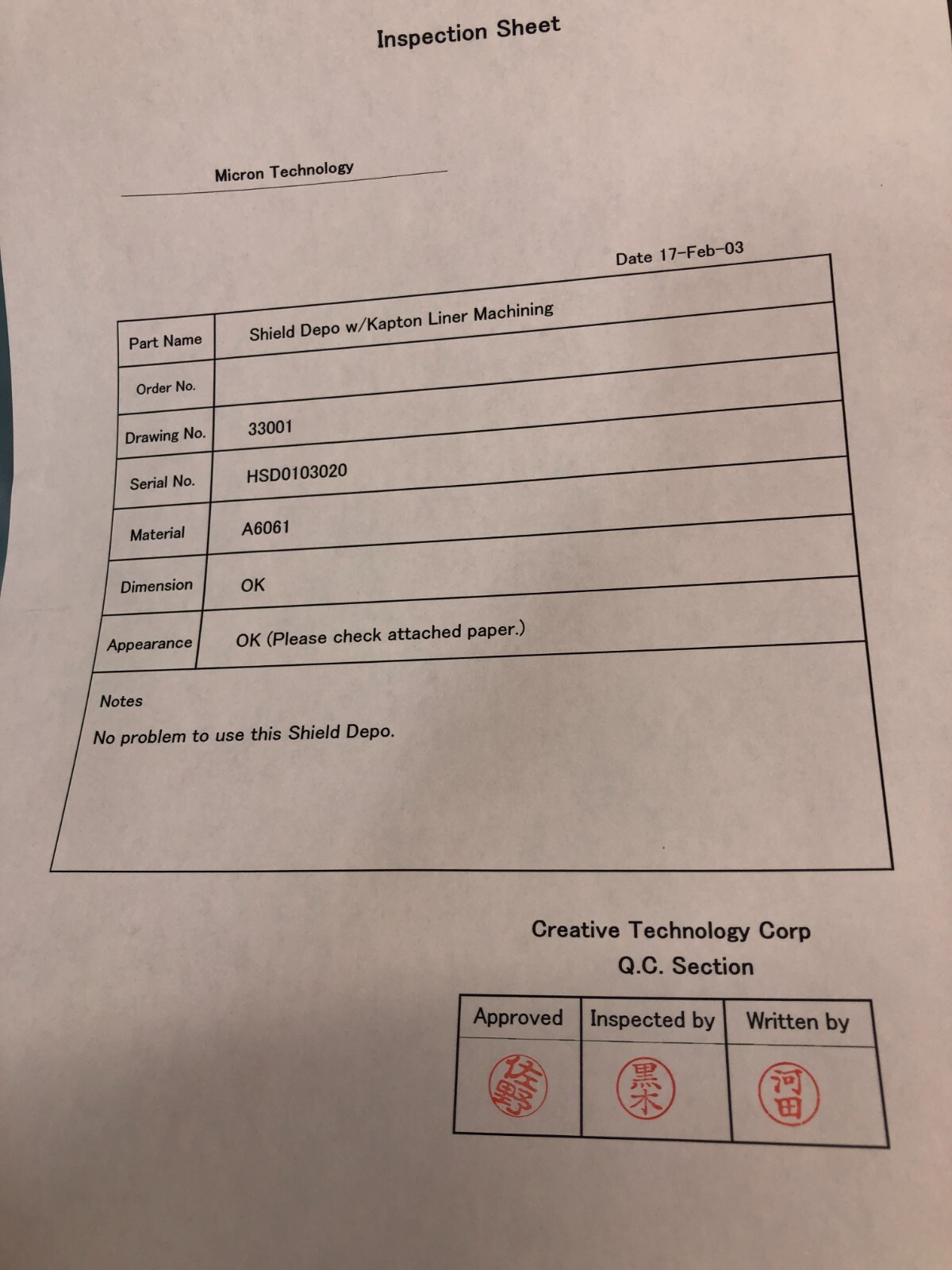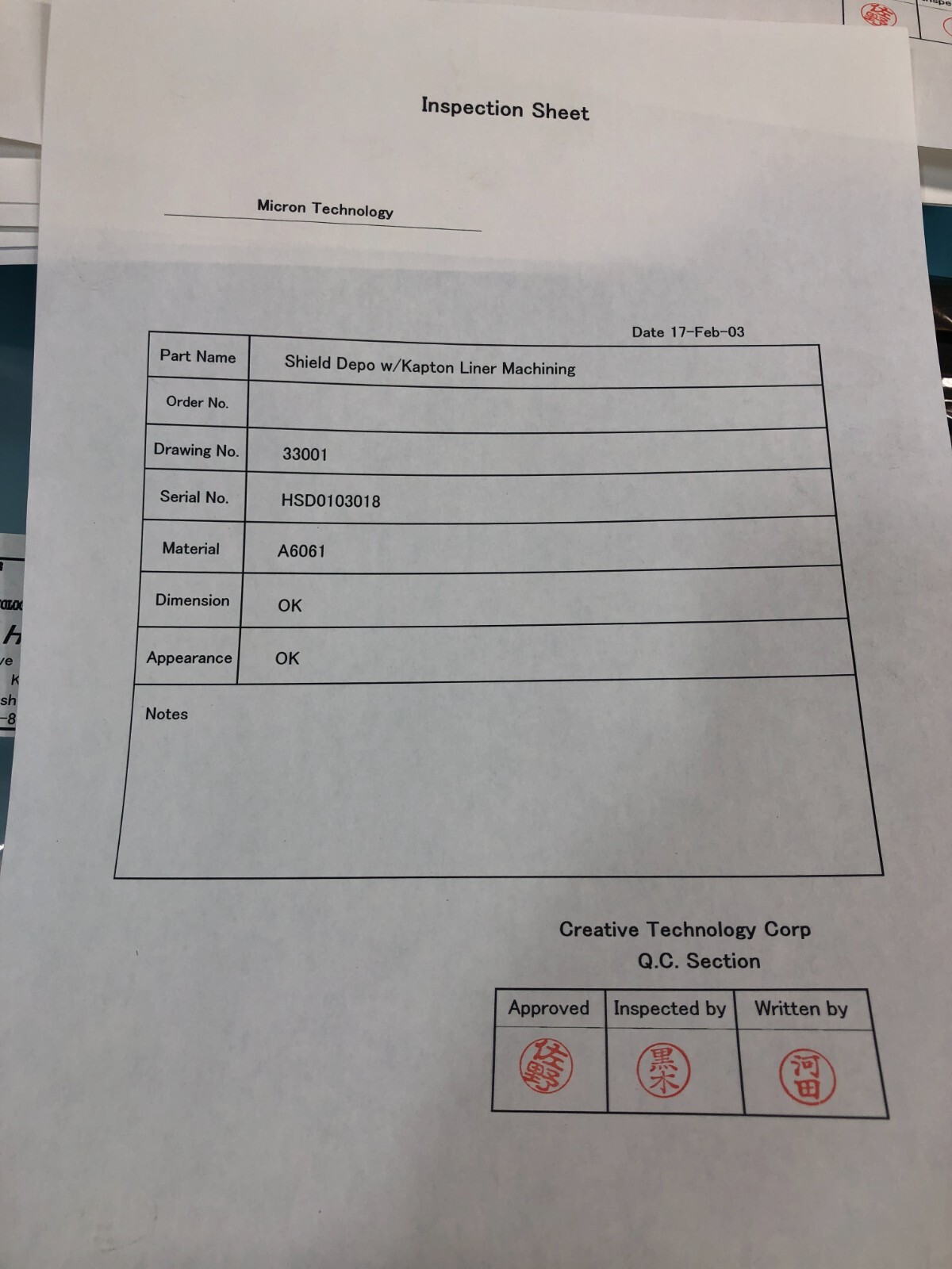 Creative Technology HSD 0103021, HSD 0103024, HSD 0103027, Shield Depo w/ Kapton Liner Machining