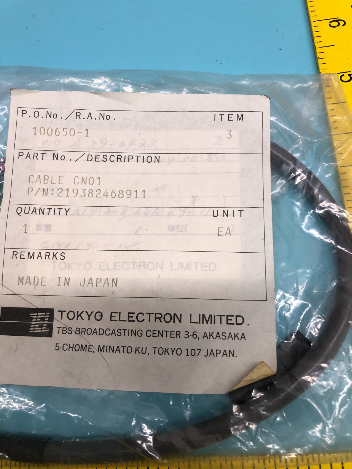 Tokyo Electron TEL 219382468911 Cable CN01, DS2193-824689-11, 2193-824689-11,