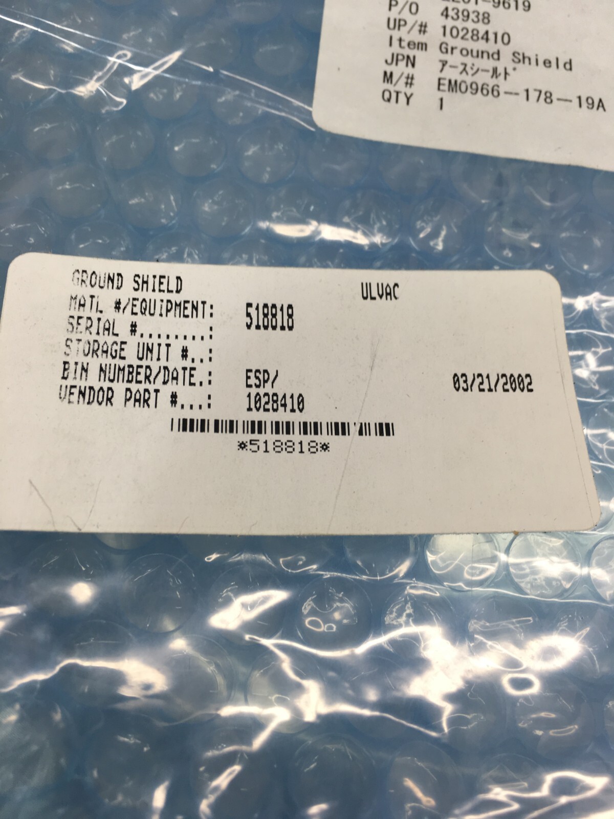 ULVAC 1028410 GROUND SHIELD, ZE00-9611, EM0966-178-19A