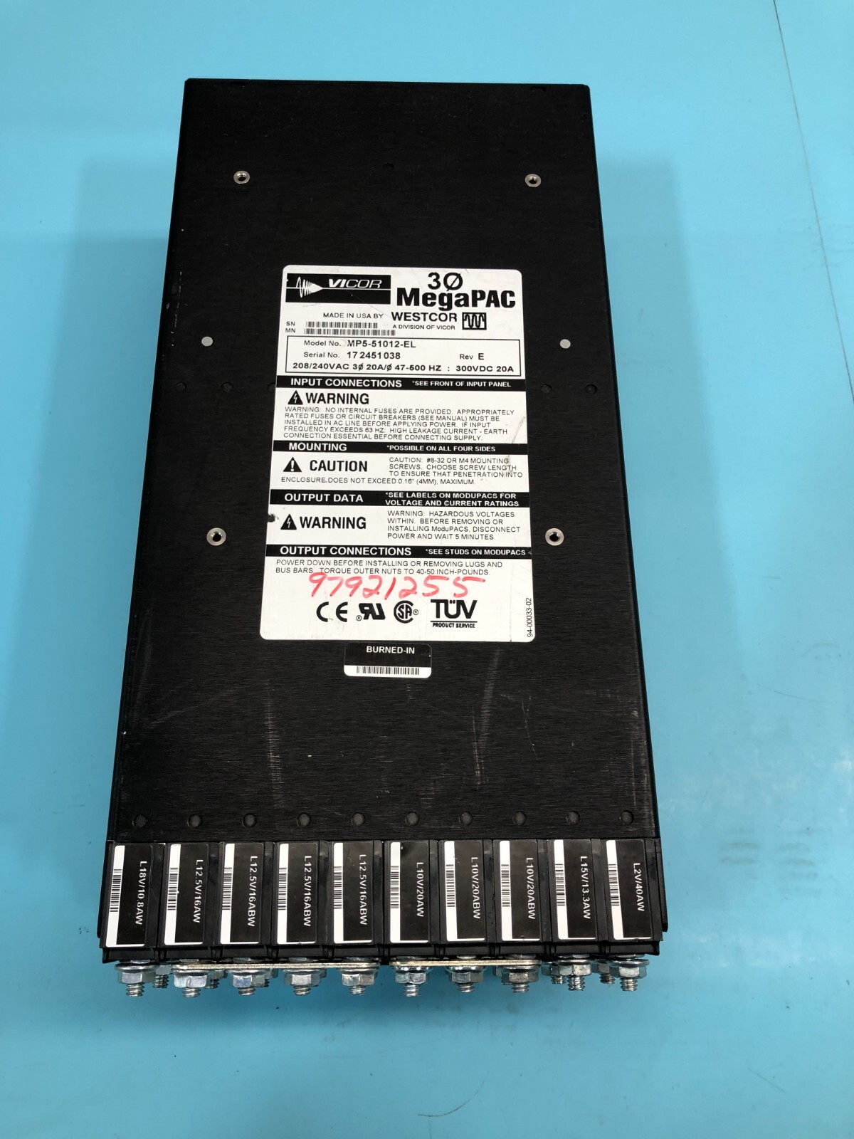 Vicor MP5-51012-EL MegaPAC Power Supply, Schlumberger 97921255, 208/240VAC, 3PH, 20A/PH, 47-500Hz, 300VDC 20A